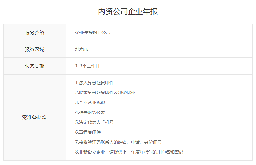 内资公司企业年报